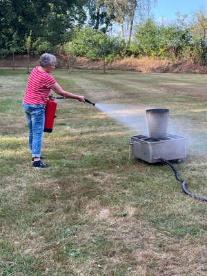 Sicher im Ernstfall – Landfrauen üben den Umgang mit dem Feuerlöscher